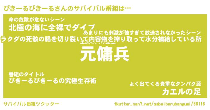 | 胡散臭い通販商品みたいなあだ名 | 『億万長者になれるブレスレット…その名も「びきーるびきーる」』 |