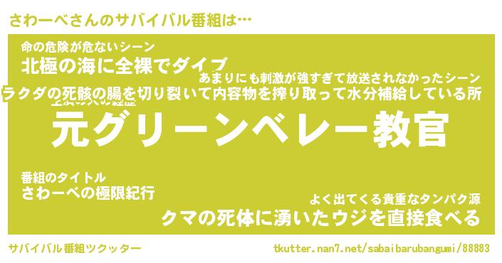 | 欧米人風あだ名 | 『マイケルさわーべ』『ウサインさわーべ』 |