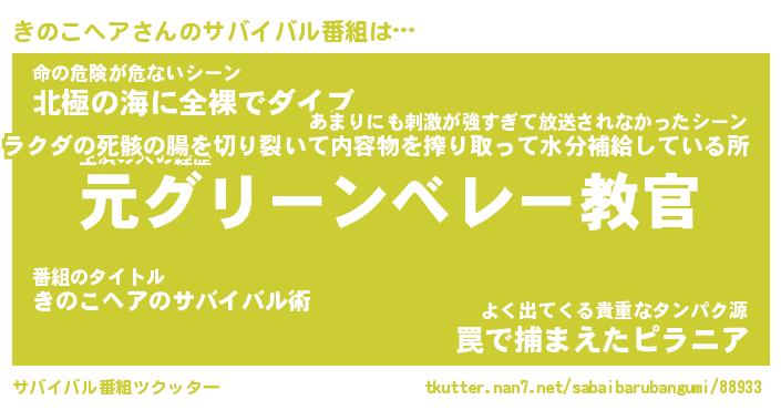 | ヒーロー風カッコイイあだ名 | 『スーパーキノコヘア』『天弓騎士キノ』 |