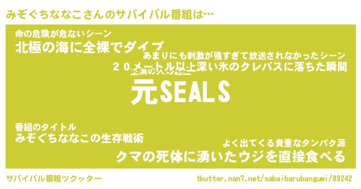 | 伝説のあだ名 | 『不死鳥のスナイパーみぞぐちななこ』 |