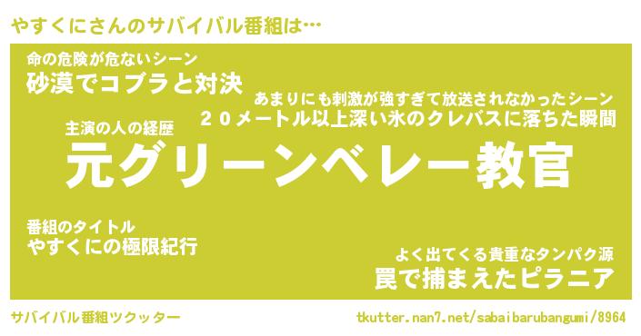 | ヒーロー風カッコイイあだ名 | 『スーパーヤスクニ』『天弓騎士ヤス』 |