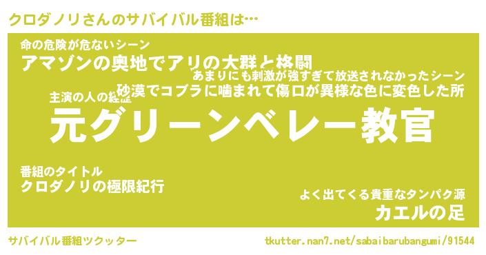 | 2回繰り返すあだ名 | 『クロクロ』『ククロロ』『ぬるぬる』 |