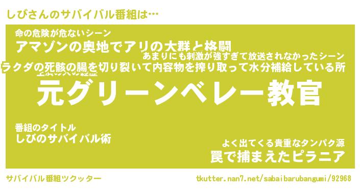 | ヘコむあだ名 | 『しびふぇ~』『レバニラ』『しびを』 |