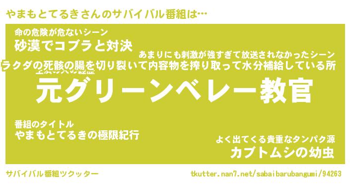 | 伝説のあだ名 | 『不死鳥のスナイパーやまもとてるき』 |