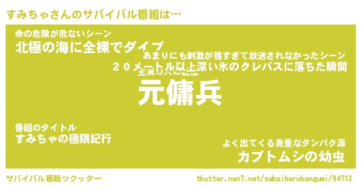 | 胡散臭い通販商品みたいなあだ名 | 『億万長者になれるブレスレット…その名も「すみちゃ」』 |
