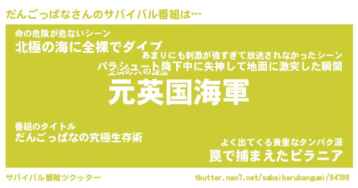 | 伝説のあだ名 | 『伝説のスナイパーだんごっぱな』 |