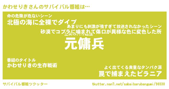 | 胡散臭い通販商品みたいなあだ名 | 『億万長者になれる霊験あらたかなお札…その名も「かわせりき」』 |