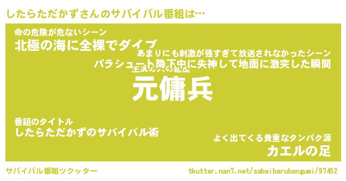 | 胡散臭い通販商品みたいなあだ名 | 『億万長者になれるブレスレット…その名も「したらただかず」』 |