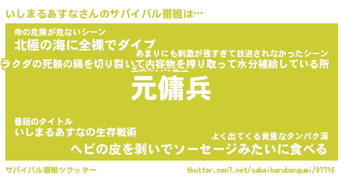 | 胡散臭い通販商品みたいなあだ名 | 『億万長者になれるブレスレット…その名も「いしまるあすな」』 |