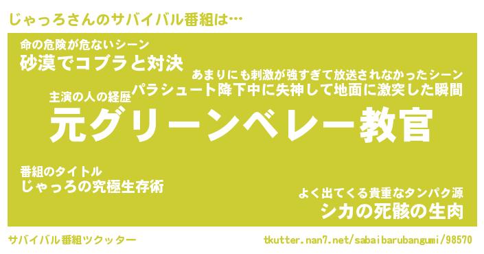 | 伝説のあだ名 | 『不死鳥のスナイパーじゃっろ』 |