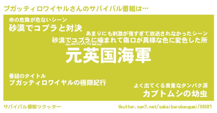 | 伝説のあだ名 | 『伝説のスナイパーブガッティロワイヤル』 |