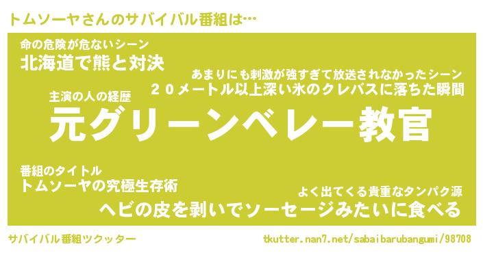 | ヘコむあだ名 | 『トムふぇ~』『なまこ酢』『トムを』 |