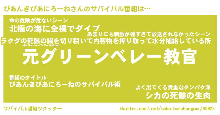 | 胡散臭い通販商品みたいなあだ名 | 『必ず成功するブレスレット…その名も「びあんきびあにろーね」』 |