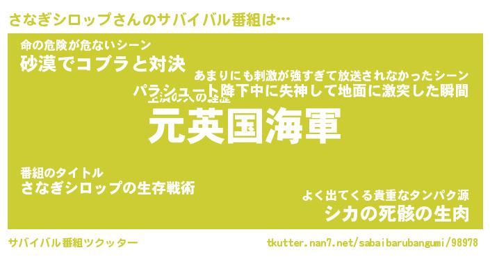 | 伝説のあだ名 | 『伝説の傭兵さなぎシロップ』 |