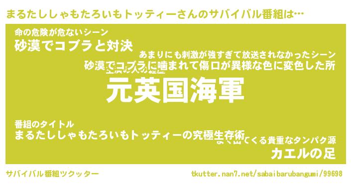 | 胡散臭い通販商品みたいなあだ名 | 『必ず成功するブレスレット…その名も「まるたししゃもたろいもトッティー」』 |