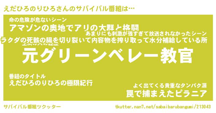 | 胡散臭い通販商品みたいなあだ名 | 『必ず成功する霊験あらたかなお札…その名も「えだひろのりひろ」』 |