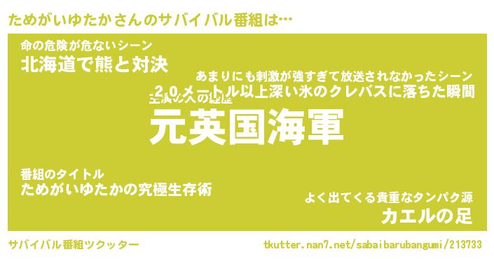 | 伝説のあだ名 | 『伝説のスナイパーためがいゆたか』 |