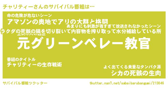 | ヒーロー風カッコイイあだ名 | 『スーパーチャリティー』『暗黒騎士チャ』 |