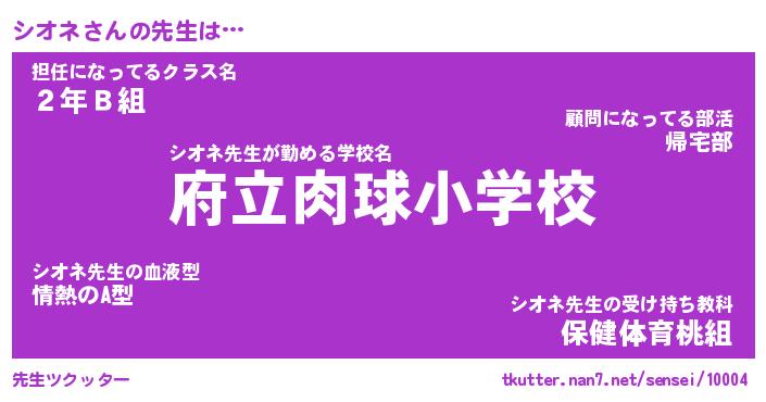 | ヘコむあだ名 | 『シオふぇ~』『豆乳』『シオぷりん』 |