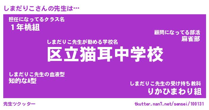 | ピコ太郎風あだ名 | 『シコ次郎』『ピシ十郎』『シマ二郎』 |