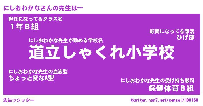 | ヘコむあだ名 | 『にしっふぃ~』『つくし』 |