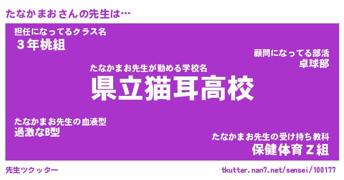 | ファンタジー風あだ名 | 『タナフェル』『エターナルタナカマオー』 |