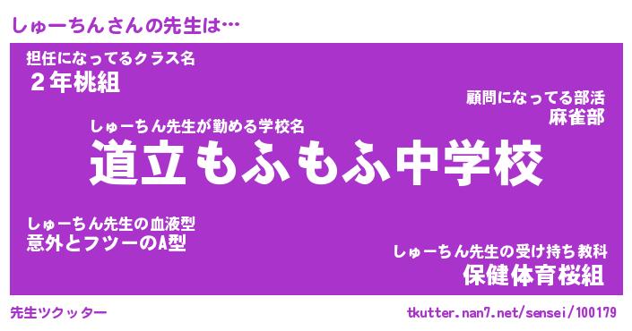 | ヘコむあだ名 | 『しゅにゅー』『なまこ酢』 |