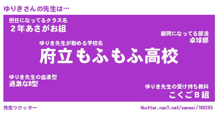| ヘコむあだ名 | 『ゆりにゅー』『なまこ酢』『ゆりお』 |