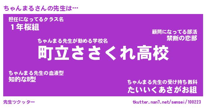 | 2回繰り返すあだ名 | 『ちゃちゃ』『ちちゃゃ』『ぬめぬめ』 |