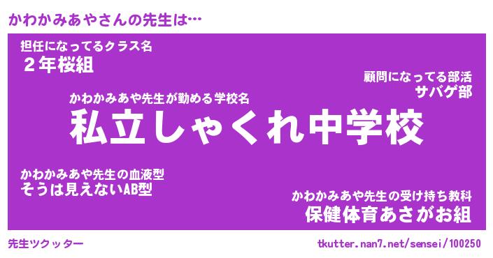 | 肩書あだ名 | 『かわかみあや御曹司』 |