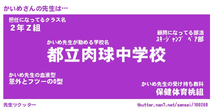 | ヒーロー風カッコイイあだ名 | 『スーパーカイメ』『ウルトラかいめマン』 |