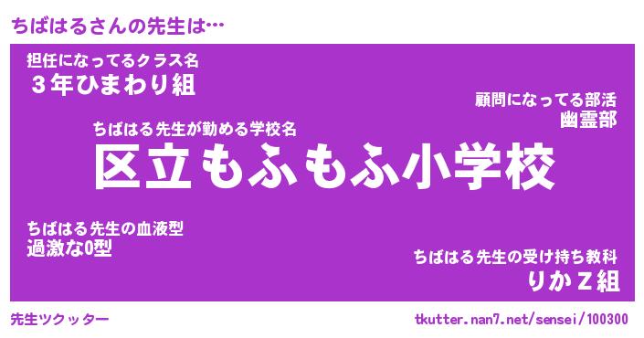 | ファンタジー風あだ名 | 『チバフェル』『エターナルチバハルー』 |