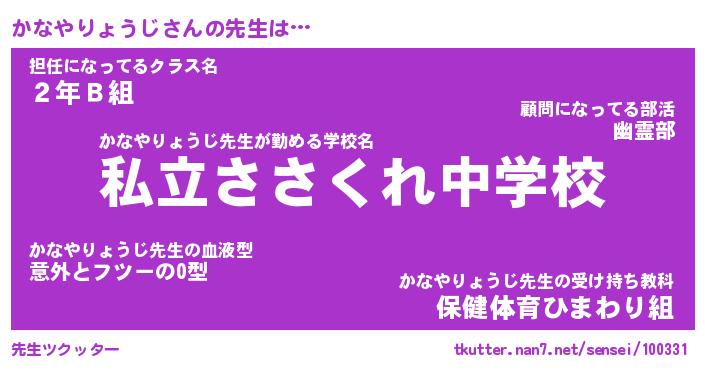 | 伝説のあだ名 | 『伝説のスナイパーかなやりょうじ』 |