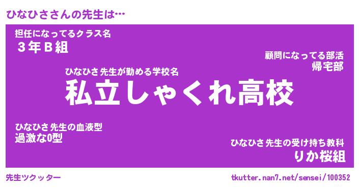 | ファンタジー風あだ名 | 『ヒナフェル』『エターナルヒナヒサー』 |