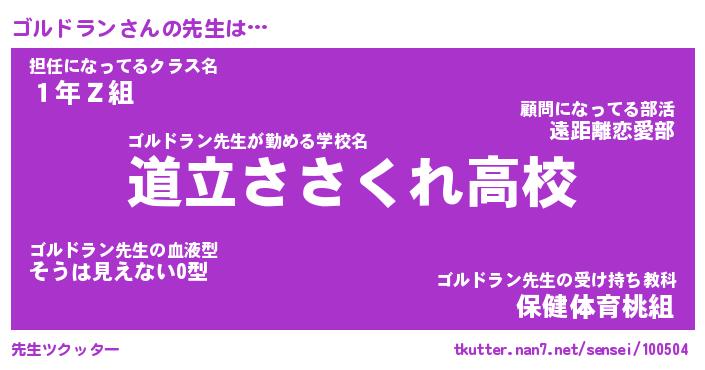 | ツイッター | ゴルドランさんのツイッターID『katatsumuri_kun』 |