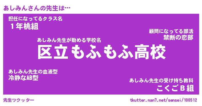 | ヘコむあだ名 | 『あしにゅー』『つくし』『あしお』 |