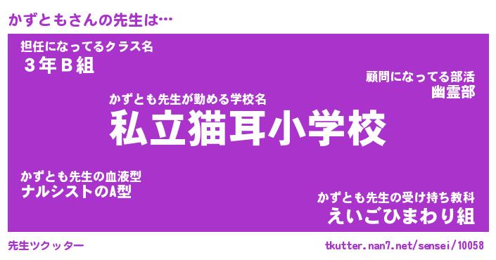 | 意味不明あだ名 | 『ペロリンかずとも』『永久保存かずとも』 |