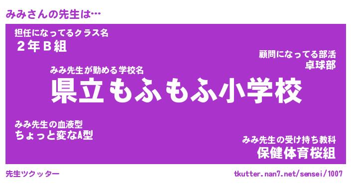 | ヘコむあだ名 | 『みみにゅー』『牛乳』『みみお』 |