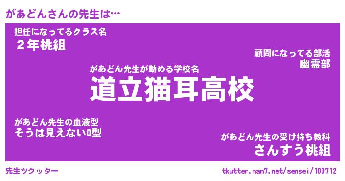 | 意味不明あだ名 | 『ペロリンがあどん』『永久保存があどん』 |