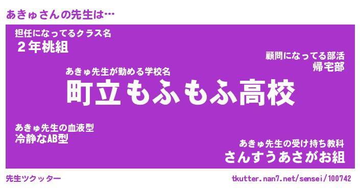 | 意味不明あだ名 | 『ペロリンあきゅ』『あきゅフォーエバー』 |