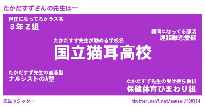 | ファンタジー風あだ名 | 『タカフェル』『エターナルタカダスズー』 |
