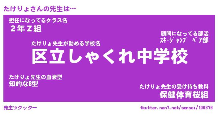| 意味不明あだ名 | 『ペロリンたけりょ』『永久保存たけりょ』 |