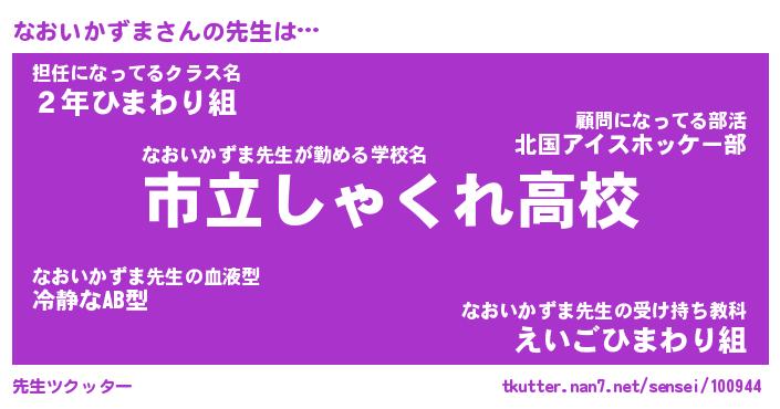 | 伝説のあだ名 | 『伝説のスナイパーなおいかずま』 |