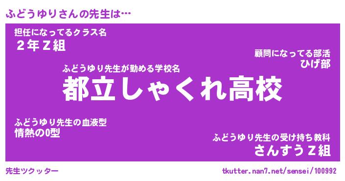 | 伝説のあだ名 | 『不死鳥のスナイパーふどうゆり』 |