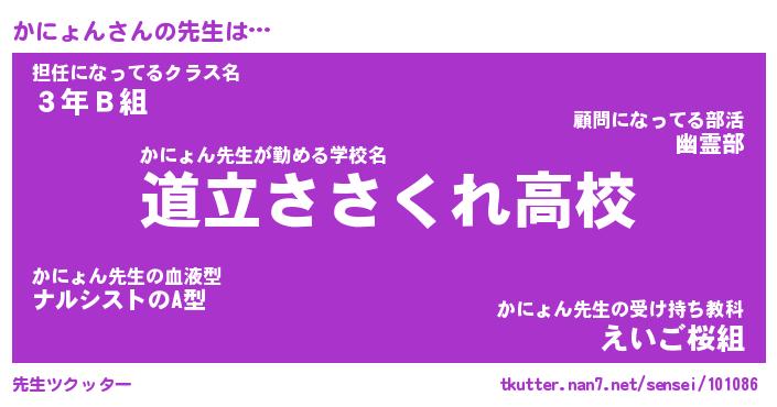 | 意味不明あだ名 | 『ペロリンかにょん』『永久保存かにょん』 |
