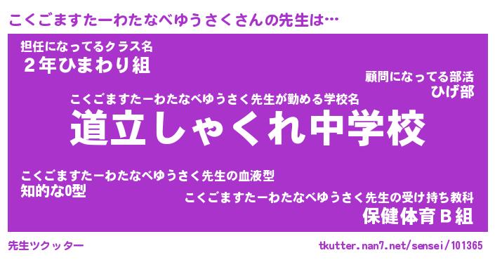 | 伝説のあだ名 | 『不死鳥のスナイパーこくごますたーわたなべゆうさく』 |