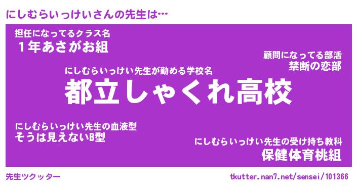 | ポケモン風あだ名 | 『ニシチュウ』『ニシムダネ』 |
