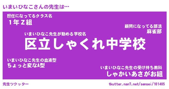 | ポケモン風あだ名 | 『イマチュウ』『イマイダネ』 |