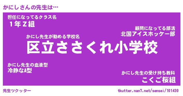 | ヒーロー風カッコイイあだ名 | 『スーパーカニシ』『ウルトラかにしマン』 |