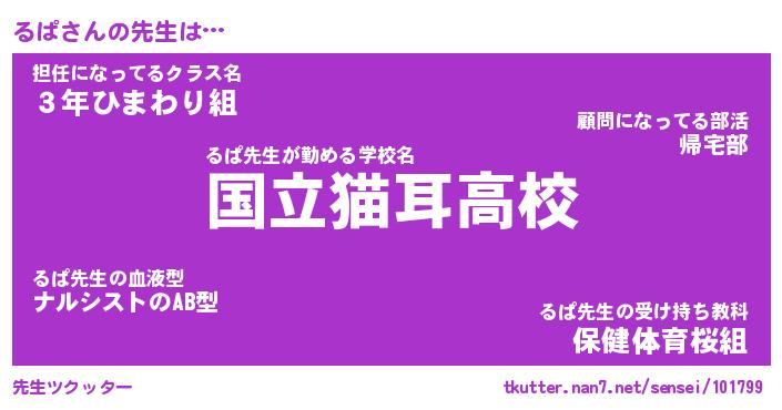 | ヘコむあだ名 | 『るぱにー』『酢こんぶ』『るぱ(笑)』 |